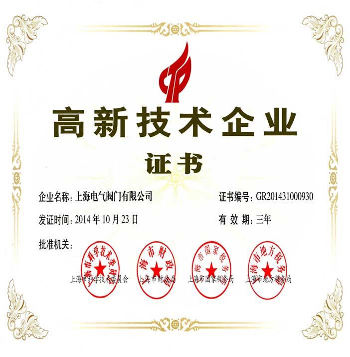榮獲高新技術企業證書